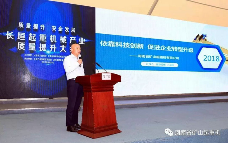 公司質(zhì)量副總丁玉岐在起重機(jī)械產(chǎn)業(yè)質(zhì)量提升大會上做專題發(fā)言