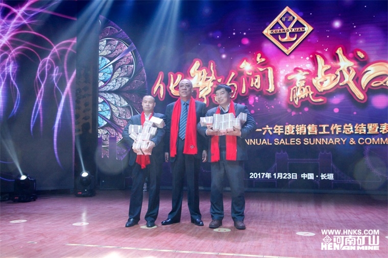 公司黨委書記崔培軍發(fā)表重要講話,他首先向蒞臨現(xiàn)場的各位領導及廣大業(yè)務精英們表示衷心的感謝和新春的祝愿,并指出公司能夠取得今日的成績,皆依賴于各級政府的大力支持、廣大業(yè)務精英的奔波拼搏和全體員工的團結奮戰(zhàn)。他說,自己也是跑業(yè)務出身,深知跑業(yè)務的艱辛,在外受盡白眼,因為公司在生產進度、核價報價、售后服務、手續(xù)辦理、拉車裝車等各個方面存在的不足,他鄭重向大家表示歉意。也正因為如此,河南礦山將不遺余力地推行簡單化管理,把復雜的問題簡單化,把簡單的問題更簡單,努力為廣大業(yè)務經理在各個方面提供便利。他提出,河南礦山的企業(yè)根基是孝道,一個人的做人根本也是孝心,什么都可以等,唯獨孝不能等。業(yè)務經理們常年奔波在外,回家的時間很少,自己將代替大家盡孝心,明年繼續(xù)帶領大家的父母雙親外出旅游。他總結道,人生重要的是人品,中華民族的文化精髓是“厚德載物”,一個人要贏得別人尊重,核心的品質就是做人厚道,希望大家永遠記在心間。